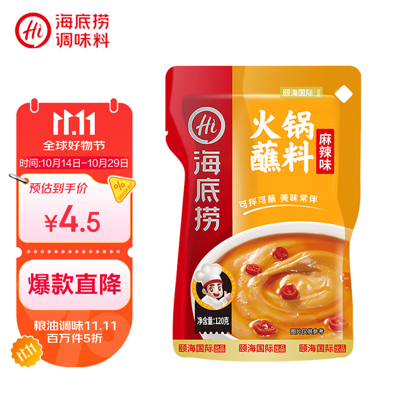 海底捞火锅蘸料 麻辣味火锅蘸料120g 凉拌菜拌面 烧烤家用调味料芝麻酱