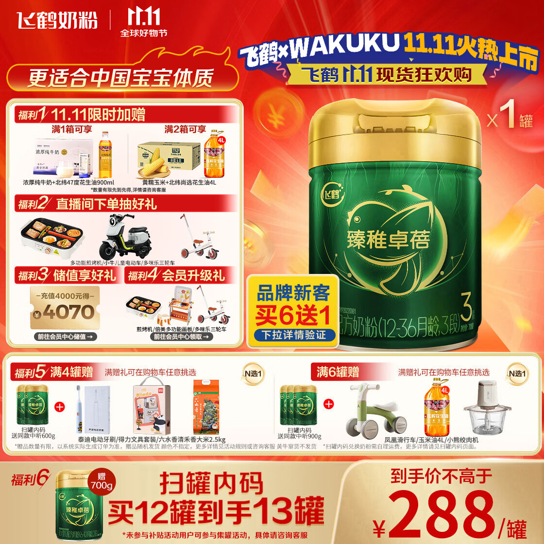 飞鹤臻稚卓蓓有机 幼儿配方奶粉3段(1-3岁)700g 乳铁蛋白 育儿补贴