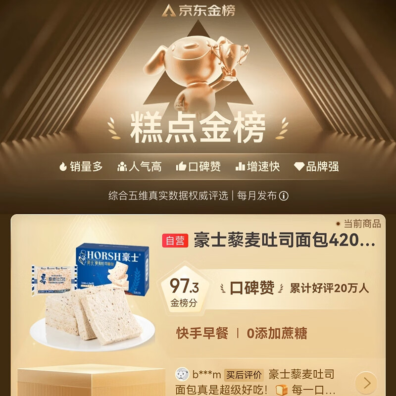 豪士面包全麦藜麦吐司420g 早餐休闲零食0蔗糖减肥减脂零食办公室糕点