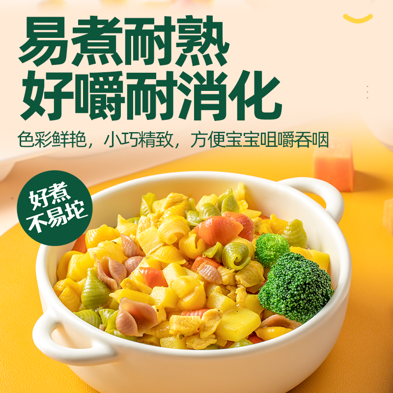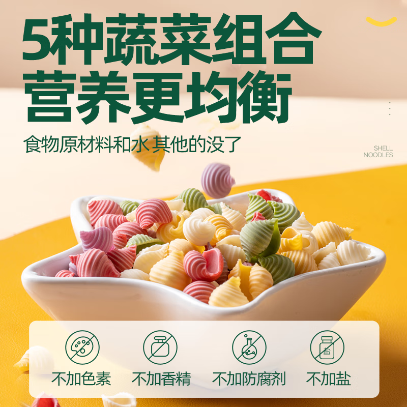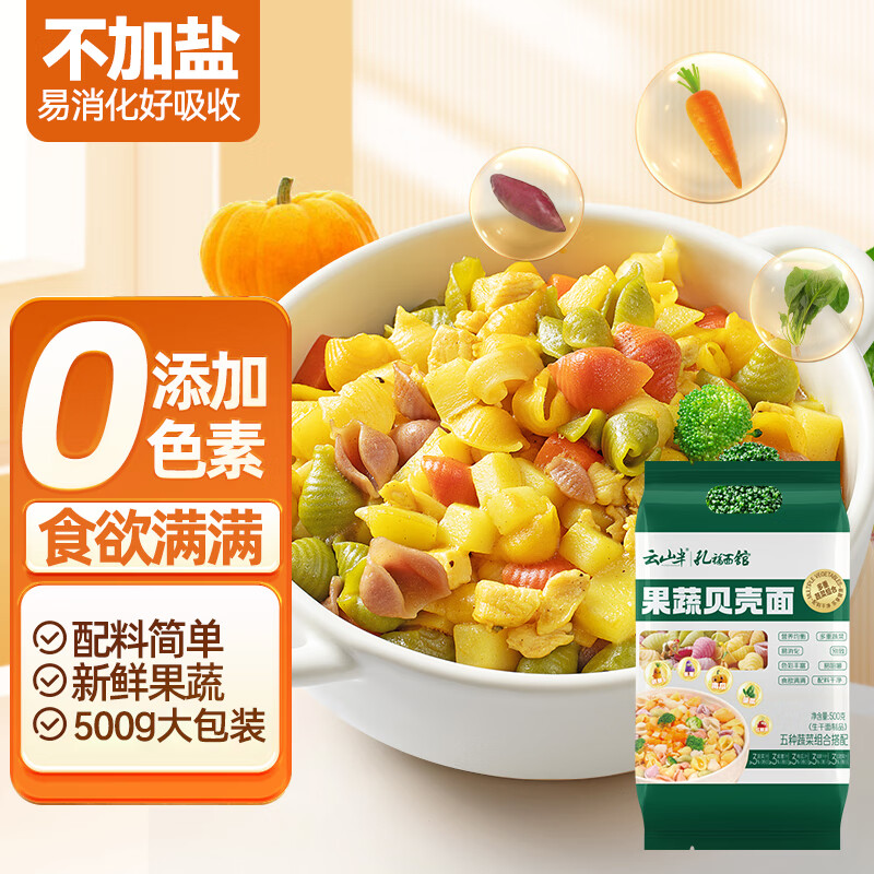 云山半果蔬贝壳面500g 多种蔬菜 儿童蝴蝶面蔬菜面彩蝶面营养卡通面条