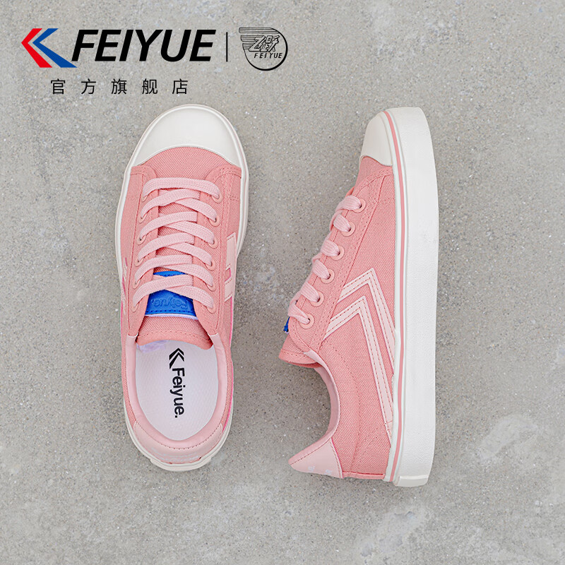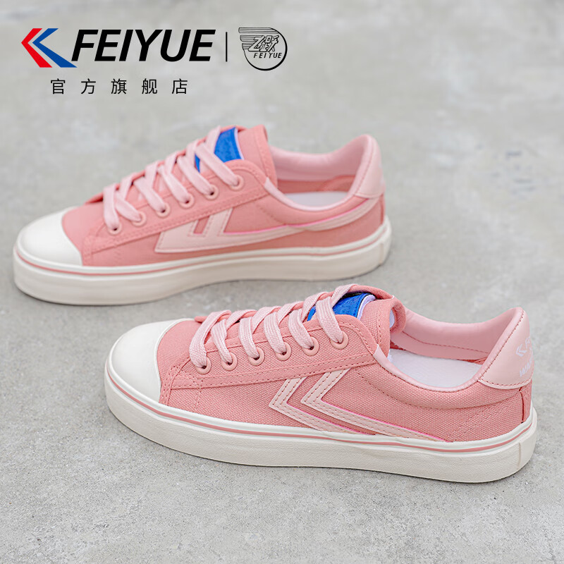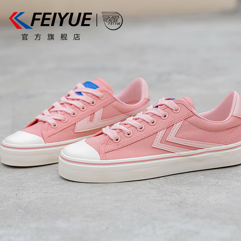 飞跃官方女鞋帆布鞋女2025四季新款鞋子女百搭女士休闲运动鞋韩版板鞋 粉红色 38