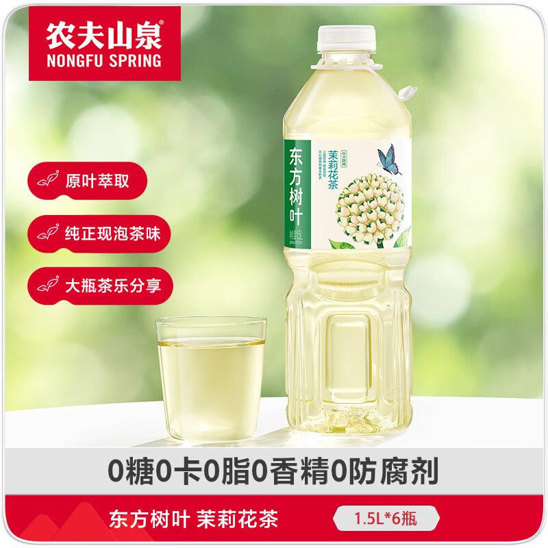 农夫山泉东方树叶茉莉花茶1.5L*6瓶无糖茶饮料0糖0脂0卡大瓶解渴整箱装