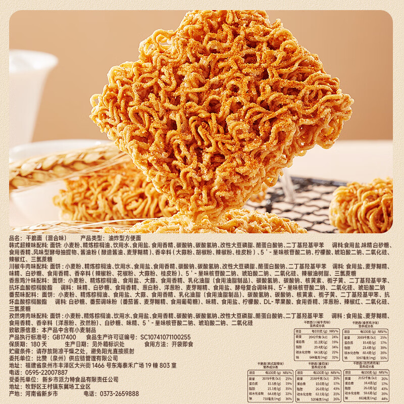 比比赞(BIBIZAN)掌心脆干脆面1500g约100包整箱混合味办公室休闲零食品干吃方便面