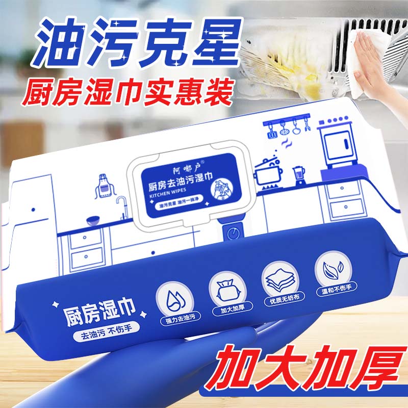 【手臂长】厨房湿巾大包装强力去污油一次性清洁油烟机湿纸巾 油污克星 1层 80抽*1包 一包装