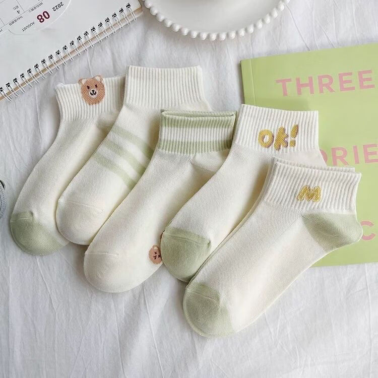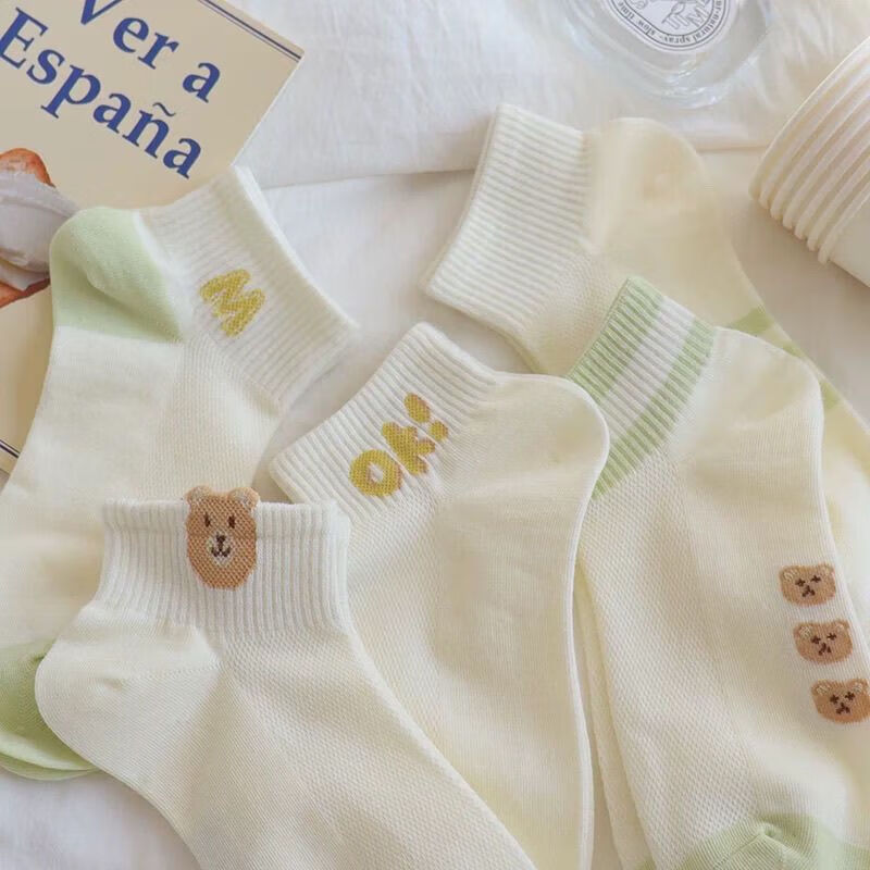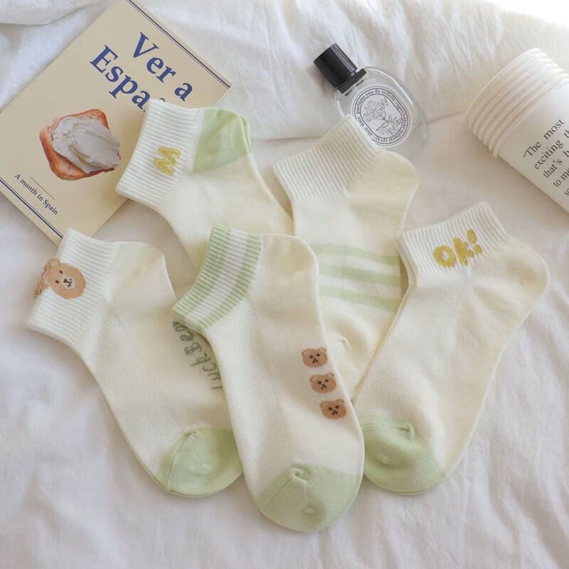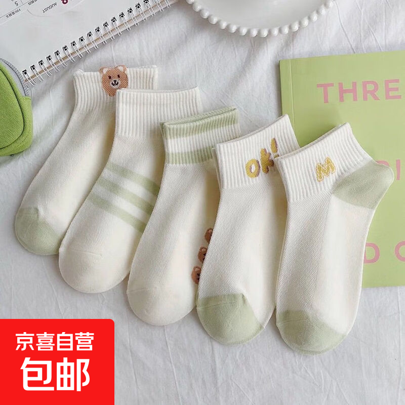 白色夏季短袜卡通女士小熊可爱薄款日系吸湿排汗学生袜子ins船袜 新人专享 颜色随机 1双