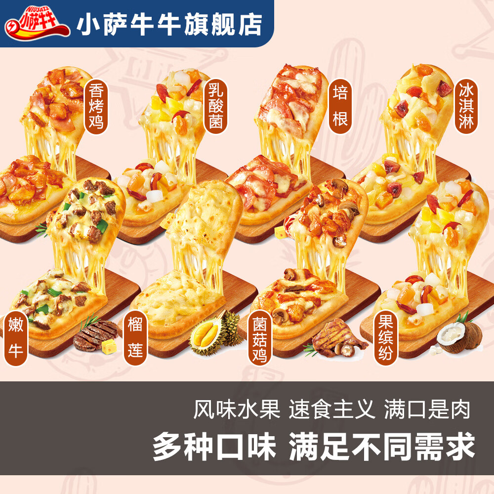 小萨牛牛披萨芝士船组合装早餐速食空气炸锅半成品学生儿童披萨pizza 芝士船披萨6片装培根-牛肉-鸡肉