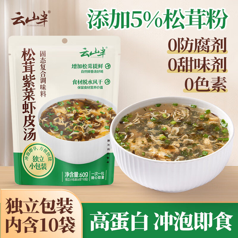 云山半 松茸紫菜虾皮汤60g 10小包裙带菜速食冲泡汤料包 低脂肪早餐干货