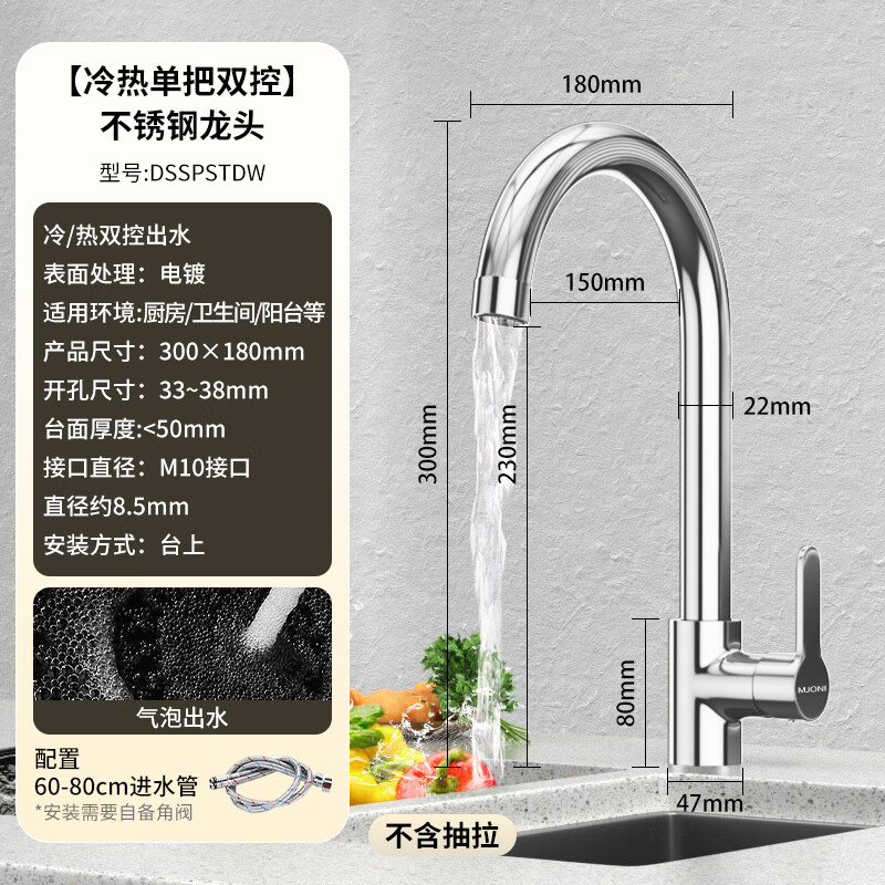 MJONI厨房水龙头 不锈钢冷热双控 洗菜盆洗碗池一体盆水龙头 DSSPSTDW