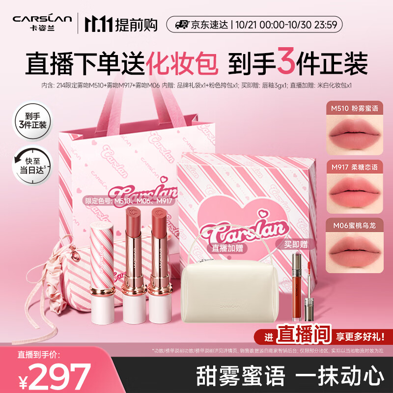 卡姿兰(Carslan)雾吻口红唇膏礼盒限定三支哑光显白不易掉色3.2g*3生日礼物送女生