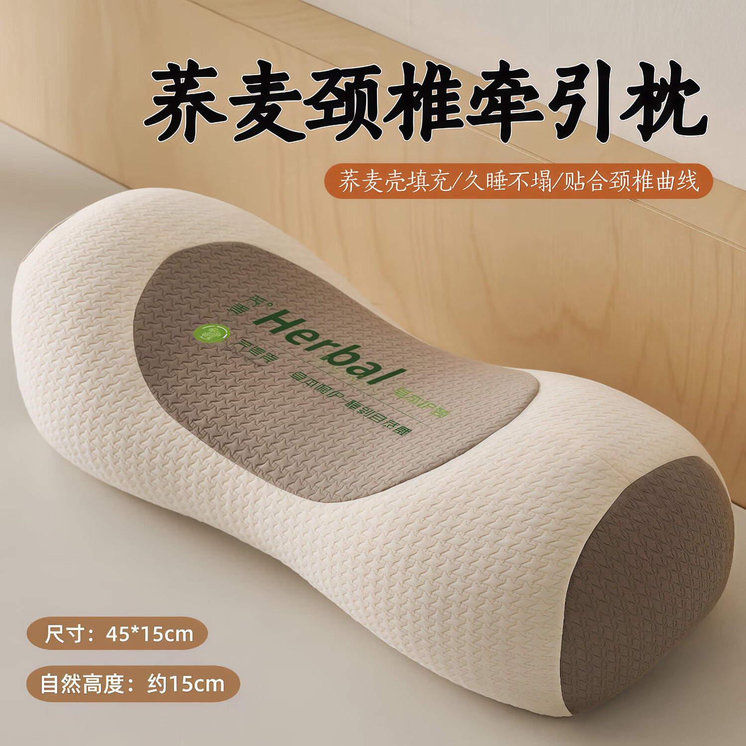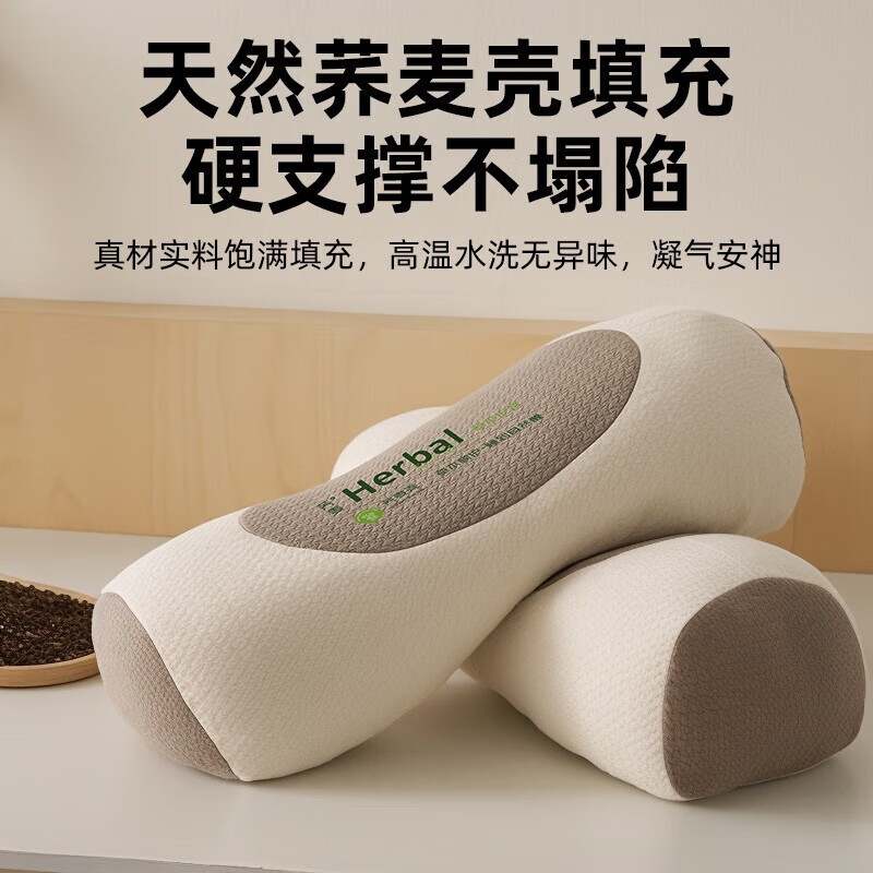 艾杰普颈椎枕护颈枕专用枕100%荞麦颈椎反弓牵引枕苦荞助眠圆柱午睡枕头