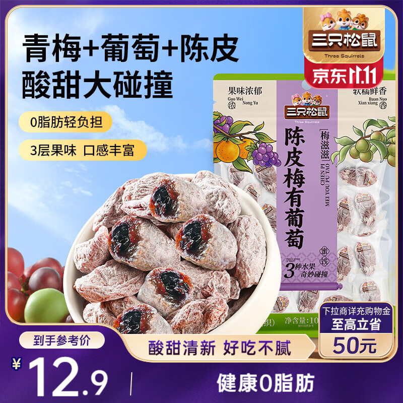 三只松鼠陈皮梅有葡萄100g蜜饯果干果脯梅子酸甜儿童休闲零食小吃