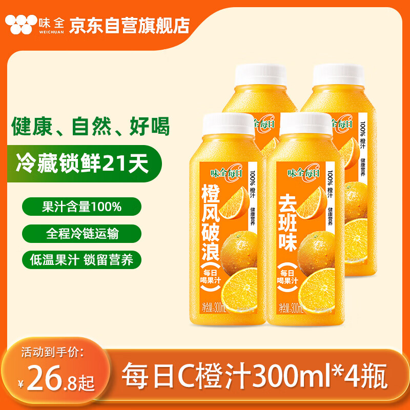 味全每日C橙汁300ml*4冷藏果蔬汁饮料 家庭聚餐露营