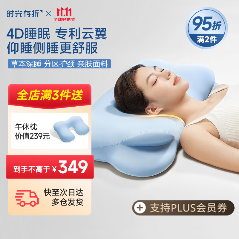 时光存折云朵枕头 记忆棉护颈枕 护脊颈椎枕侧睡趴睡枕儿童枕学生成人可用 高枕【原味】-晴空蓝
