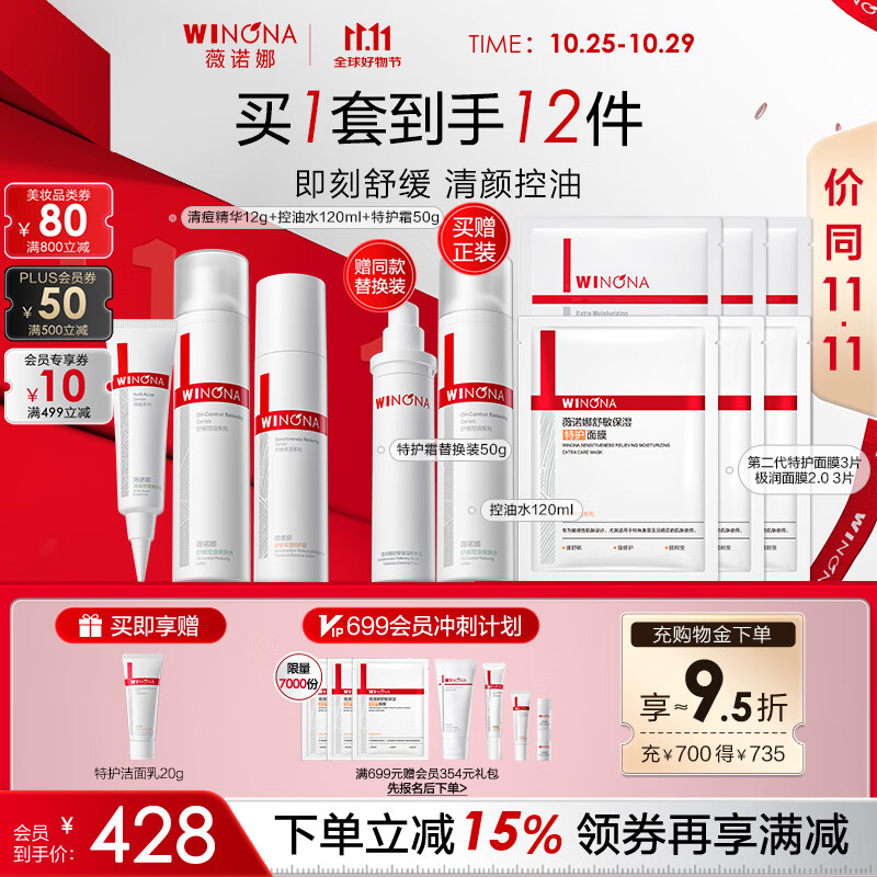 薇诺娜痘敏肌水乳精华三件套控油水第二代特护霜清痘精华
