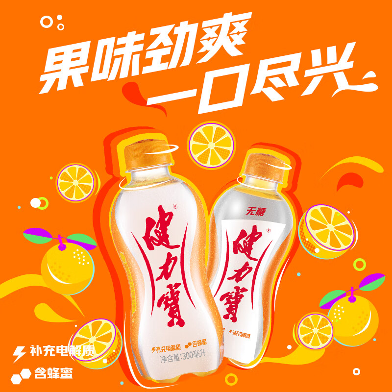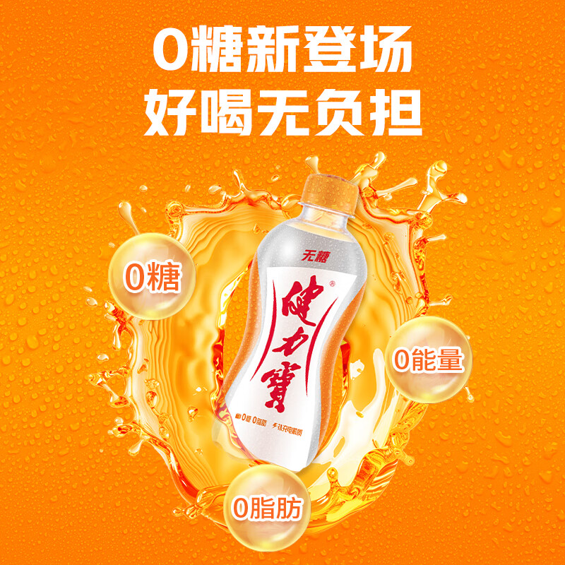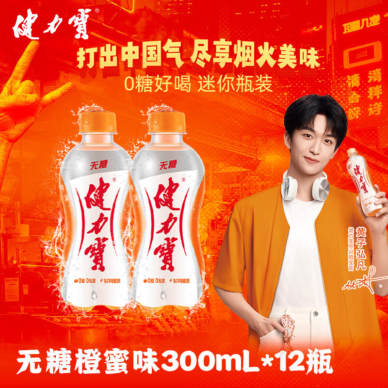 健力宝无糖0糖0脂0卡橙蜜味300mL*12瓶补充电解质运动饮料碳酸汽水果味