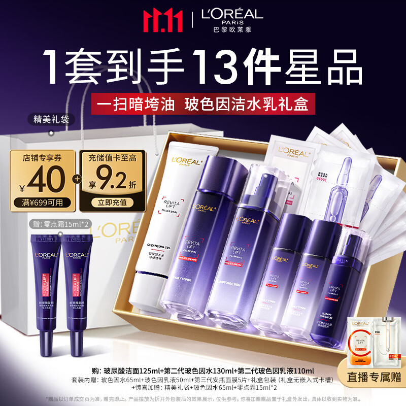 欧莱雅玻色因洁水乳套装礼盒补水保湿抗皱护肤品生日礼物