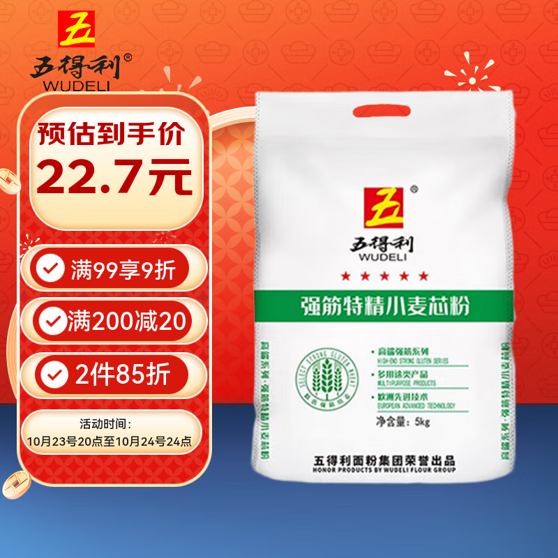 五得利强筋特精小麦粉10斤 家用烘焙通用优质面粉