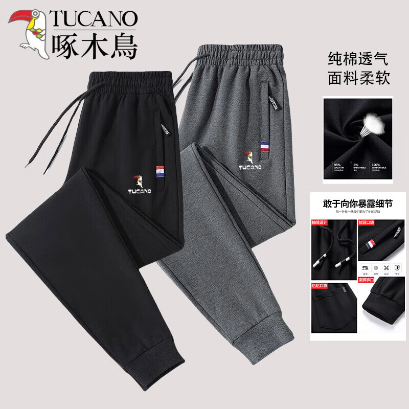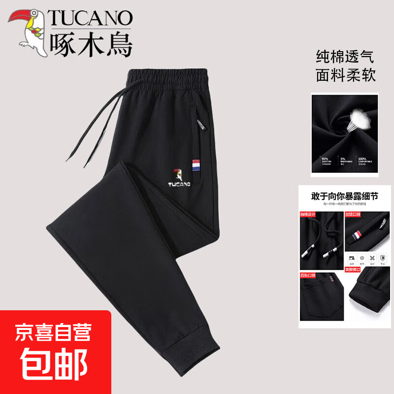 啄木鸟【运动裤纯棉潮流】男士秋冬休闲直筒长裤宽松加绒针织束 (JX7737黑色束脚) 3XL
