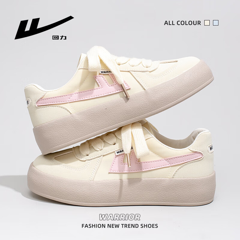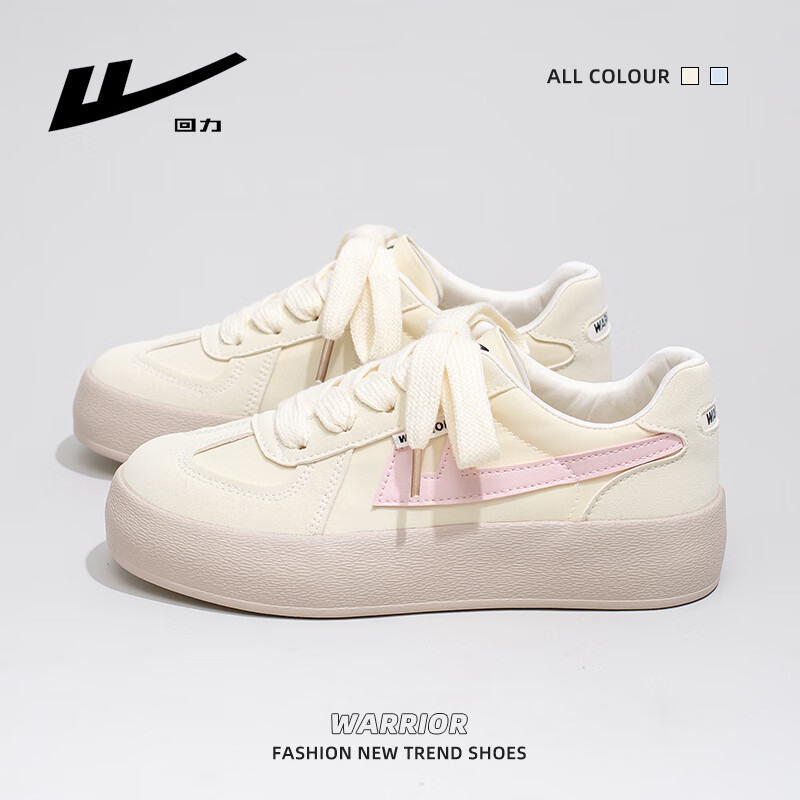 回力女鞋厚底帆布鞋女2025夏秋新款德训鞋网红百搭休闲鞋学生运动板鞋 浅黄/粉红 40