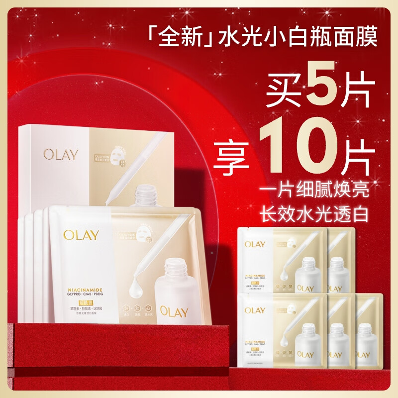 玉兰油(OLAY)全新水光小白瓶面膜5片补水美白去黄提亮肤色改善暗沉生日礼物女