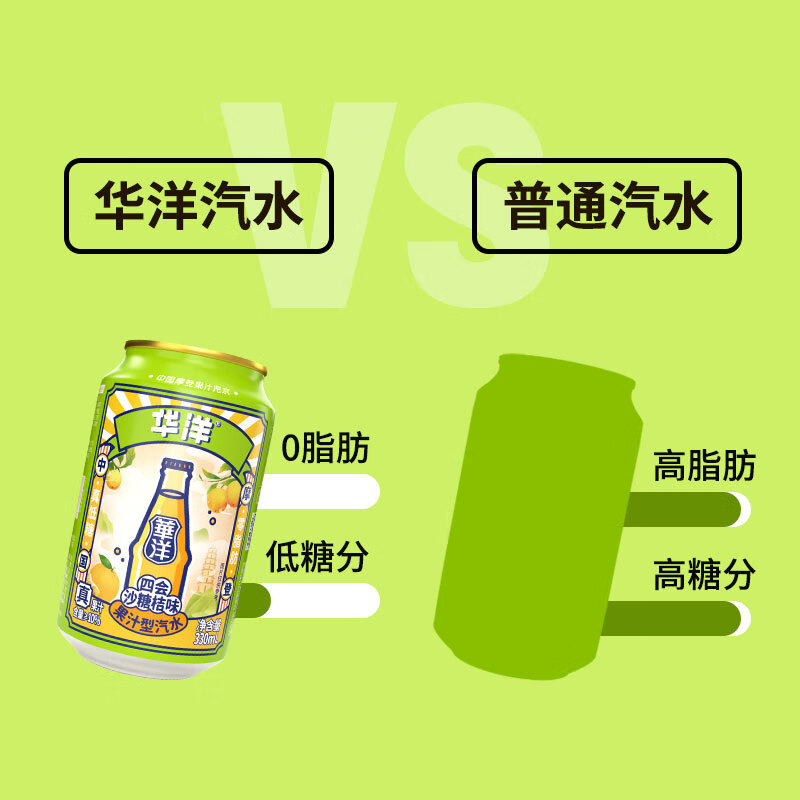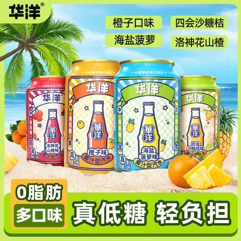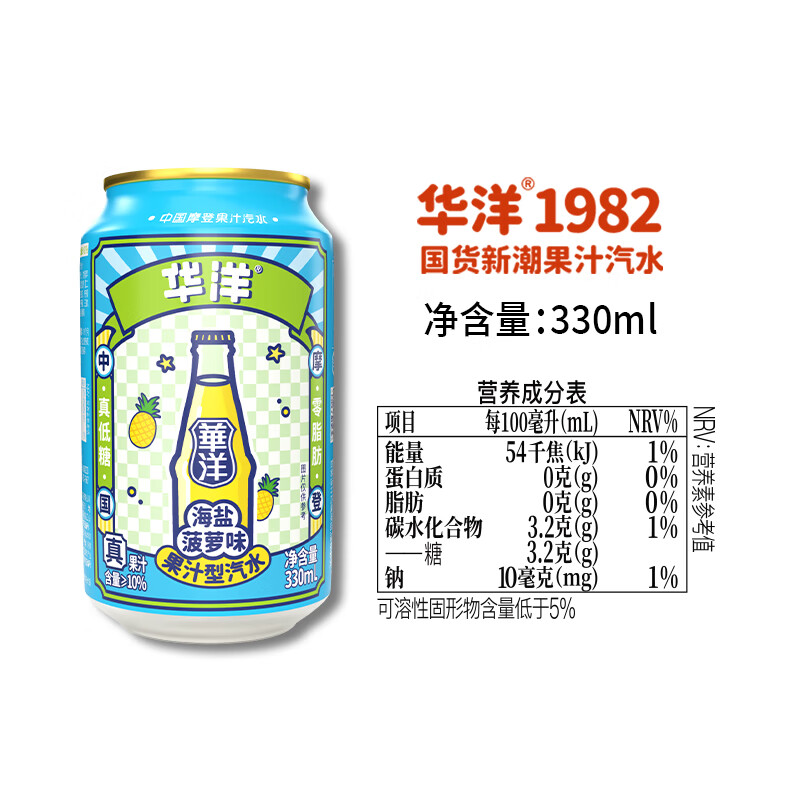 华洋汽水海盐菠萝味330ml*6罐碳酸饮料易拉罐装0脂肪低糖饮品t