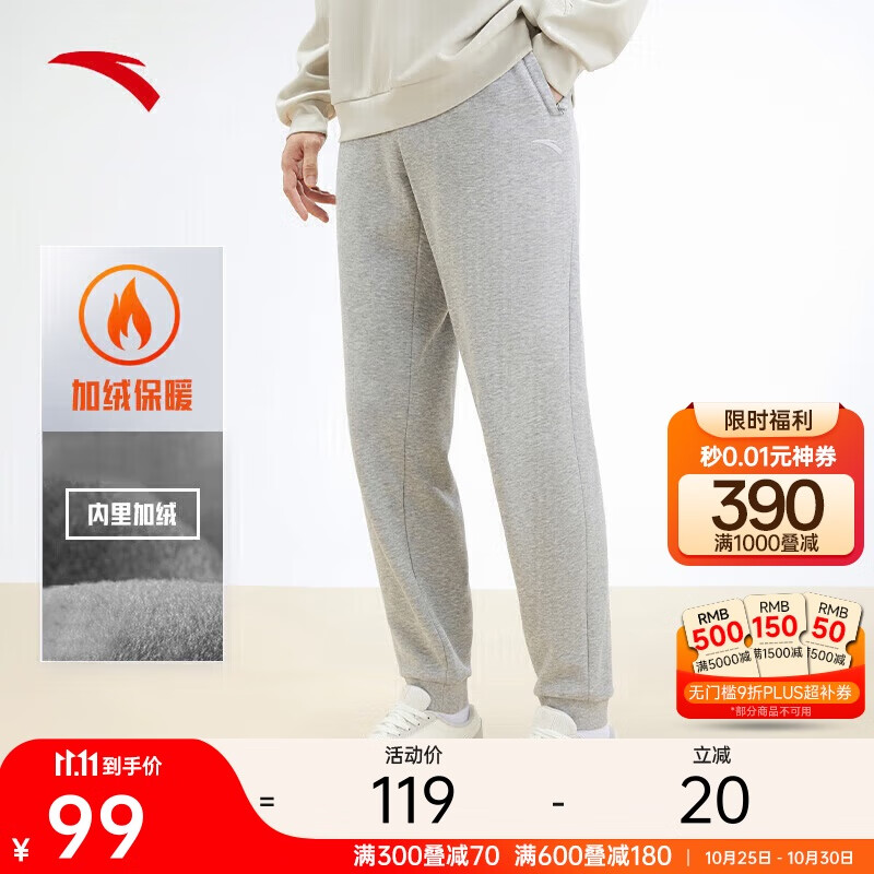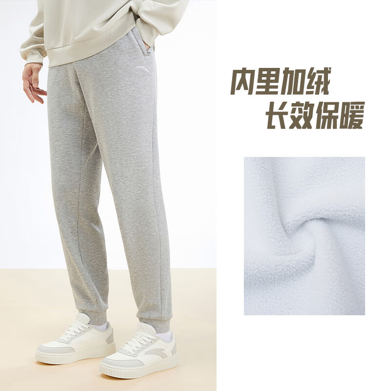 安踏加绒保暖运动裤男士卫裤秋季针织户外跑步长裤休闲裤束脚收口