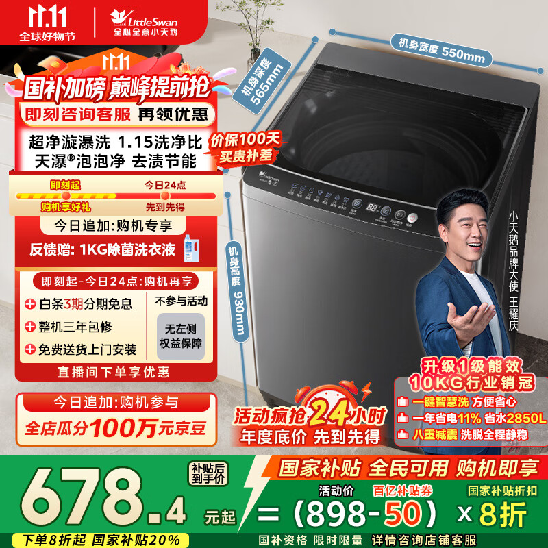 小天鹅(LittleSwan)波轮洗衣机全自动 10公斤 抗菌除螨 超净洗强去污【TB10V27T】家电国家补贴20% 一级能效 以旧换新