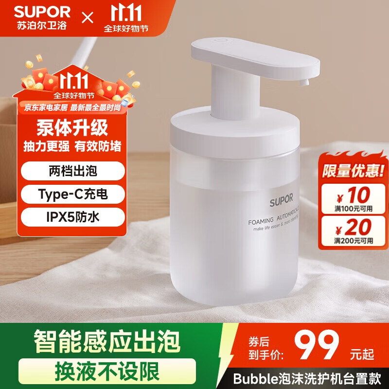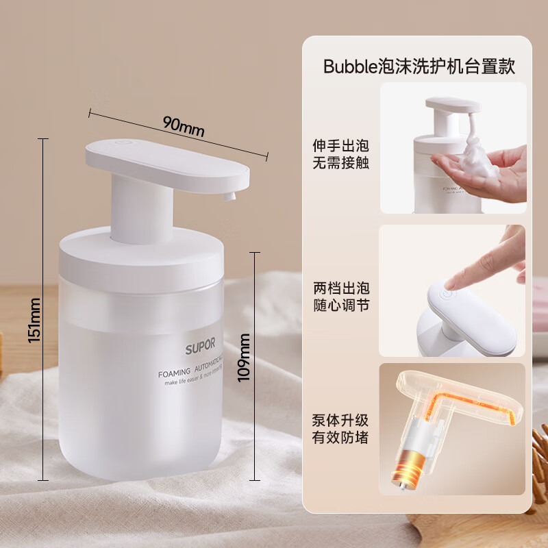 苏泊尔(SUPOR)智能泡沫洗手机自动洗手液机免接触出泡机皂液器充电款国家补贴s