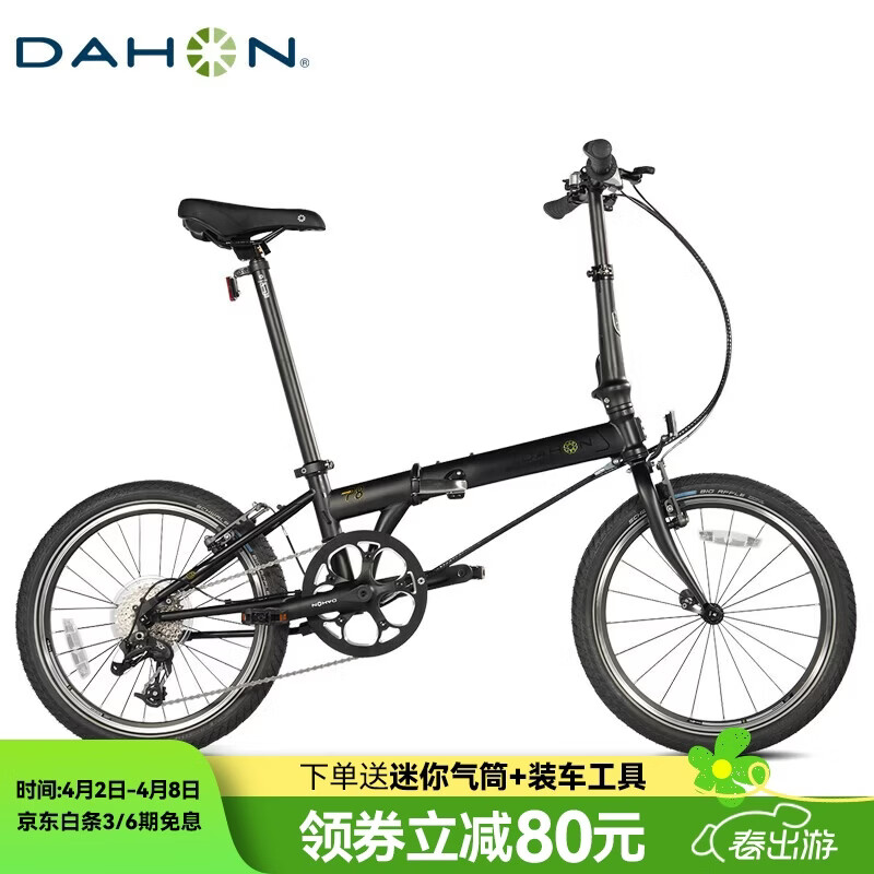 大行(DAHON)折叠自行车20英寸8级变速经典P8单车KBC083 黑色经典版-京仓