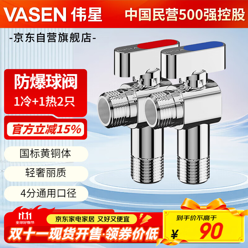 伟星 大流量黄铜球阀 2只燃气热水器壁挂炉冷热水角阀全通径球芯1132