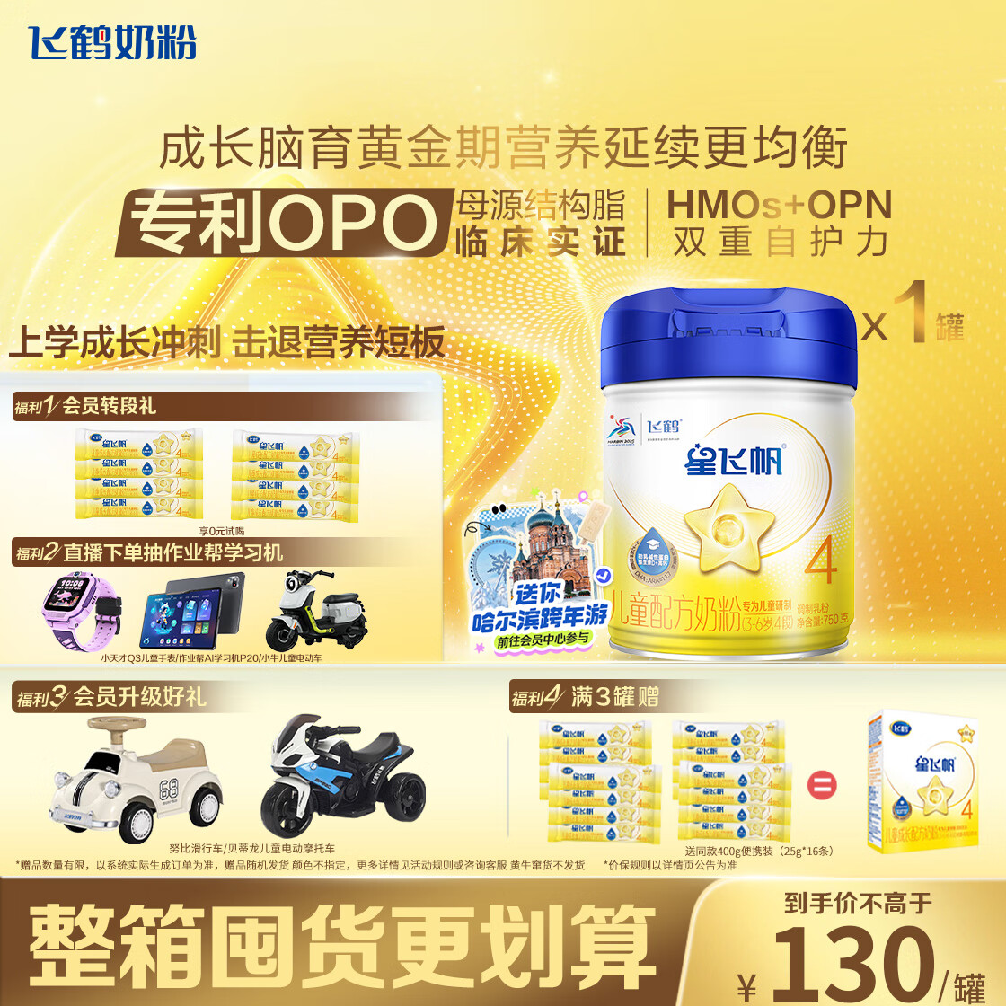 飞鹤星飞帆 CBP骨骼发育 儿童奶粉 4段(3-6岁适用)750克
