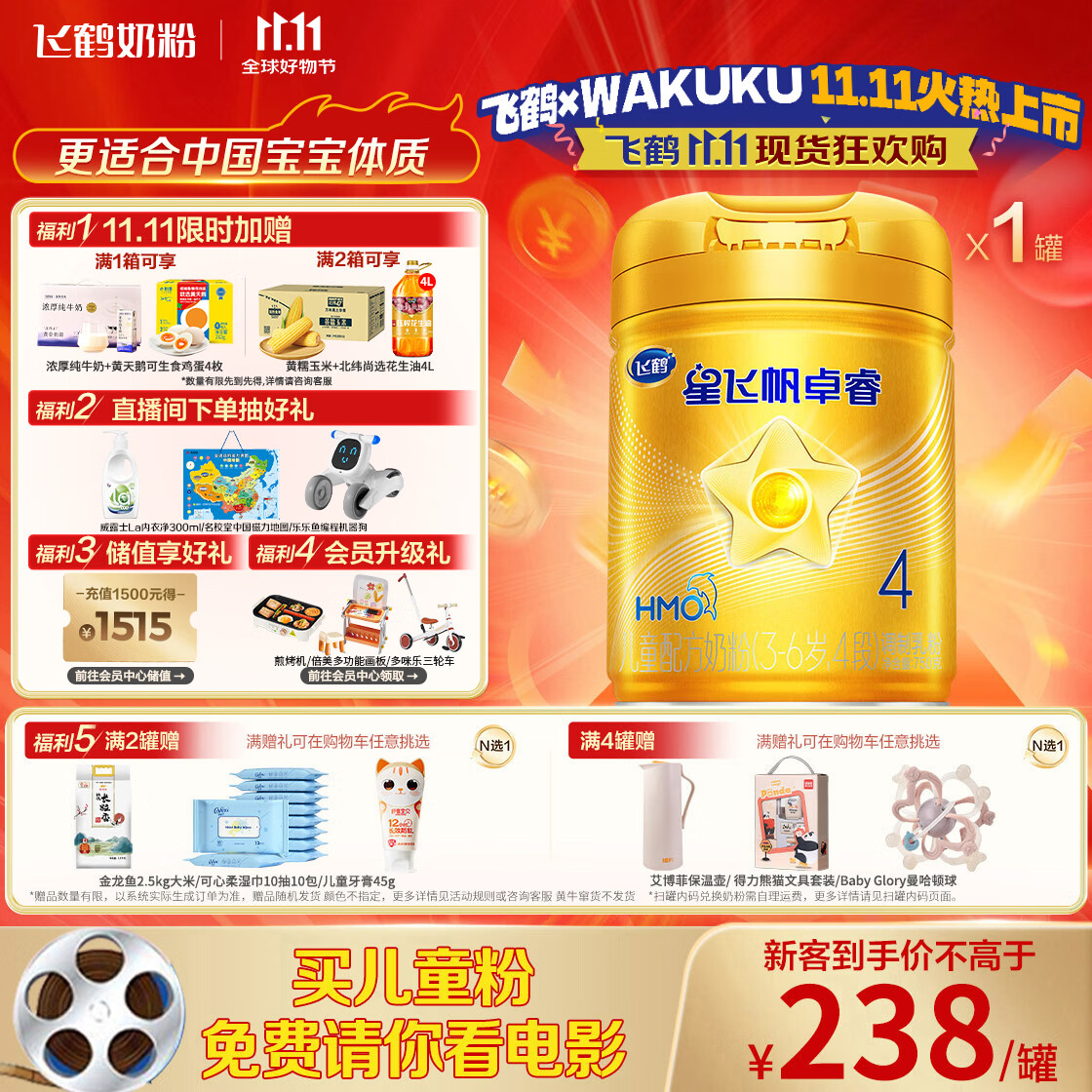 飞鹤星飞帆卓睿儿童成长奶粉4段(3-6岁) 750g 高乳铁蛋白