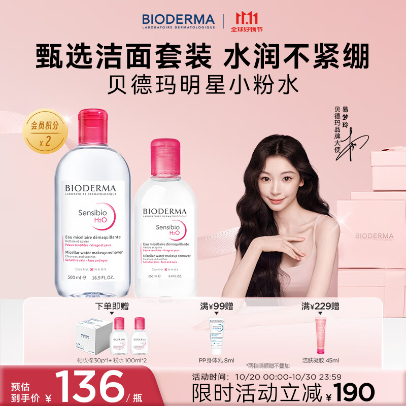BIODERMA【11.11】官方正品贝德玛送礼物爆款舒妍洁肤液卸妆水敏感肌清洁 【主赠到手950ml】粉水卸妆水
