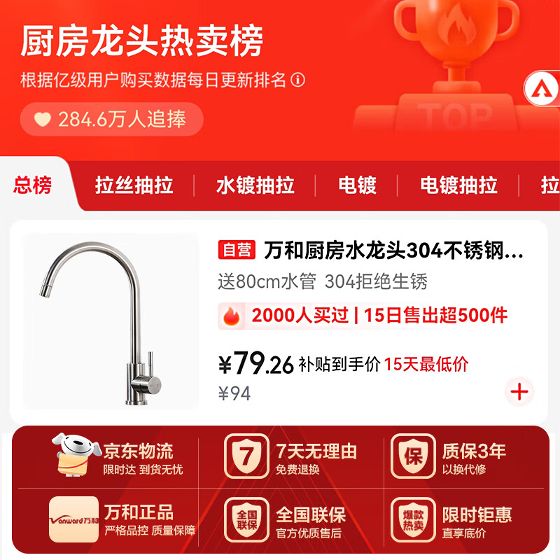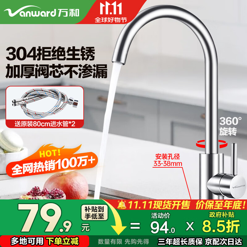 万和厨房水龙头冷热两用洗菜盆龙头304不锈钢洗碗池水槽龙头可旋转C07