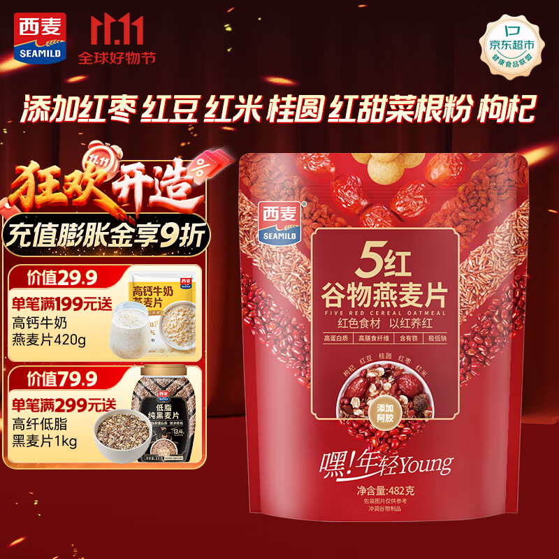 西麦5红混合谷物燕麦片482g 营养早餐谷物代餐无额外添加蔗糖