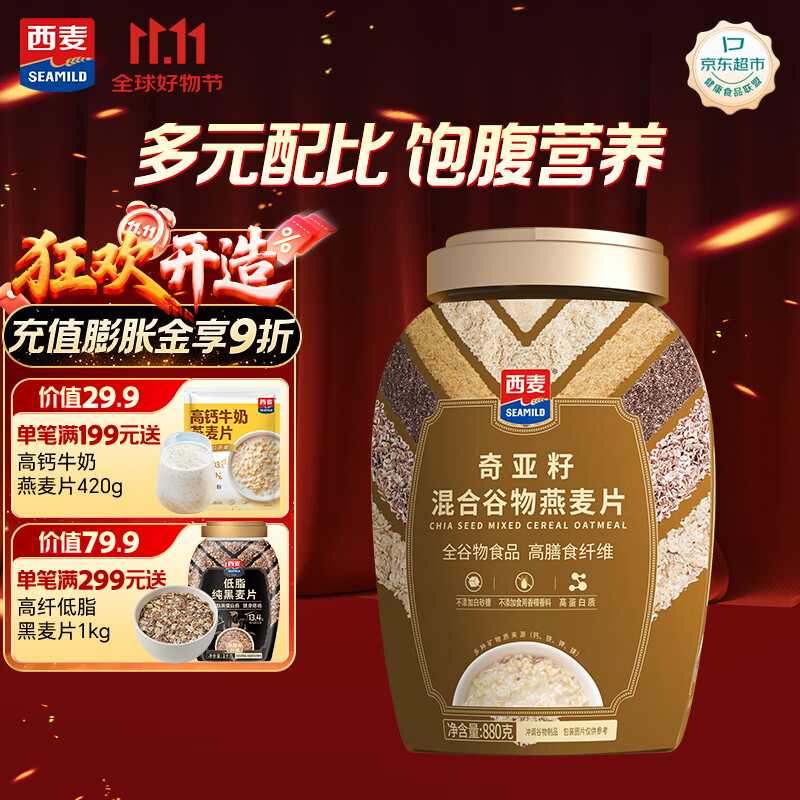 西麦奇亚籽混合谷物燕麦片880g桶即食代餐营养早餐牛奶好搭档膳食纤维