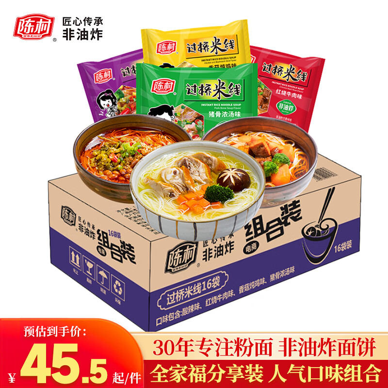陈村 4口味组合过桥米线 100g*16袋 免煮米粉粉丝螺蛳粉夜宵方便速食