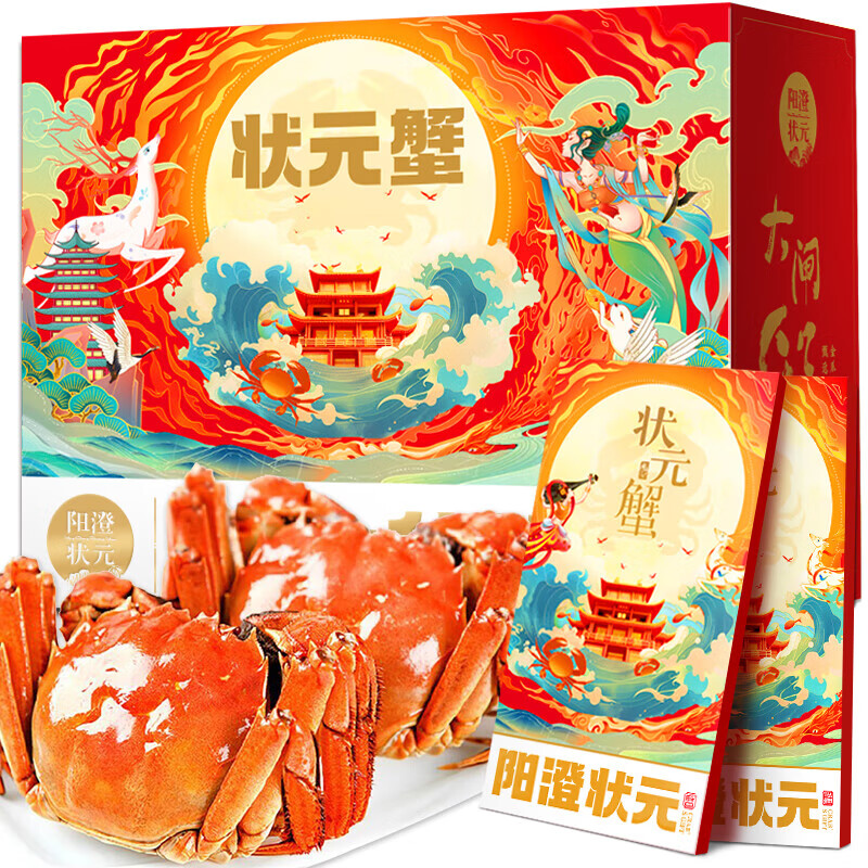 【礼券】阳澄状元大闸蟹礼券9999型公7.0两母5.0两5对海鲜螃蟹卡券团购礼盒礼品卡湖蟹