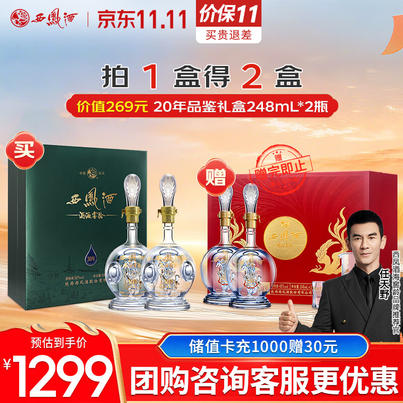 西凤酒 30年礼盒 500mL*2瓶 52度陈年凤香型白酒 婚庆喜宴请送长辈