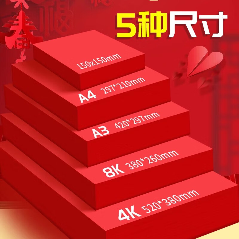 红色手工纸新年大红卡纸中国红折纸A4a3大红色硬卡纸4k8k大张双面红色加厚手工diy红色折纸 【红包雨专享】A4【80克】打印纸10张
