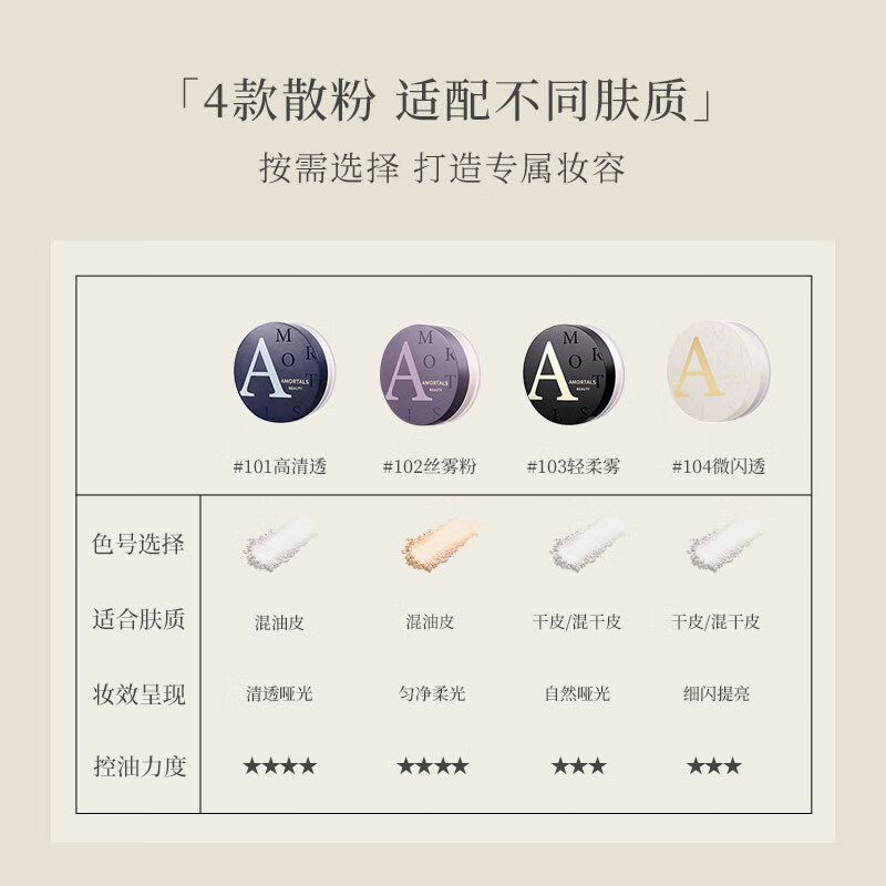 尔木萄(AMORTALS)高清丝雾定妆散粉8.5g 控油蜜粉饼清爽持久不脱妆节日礼物
