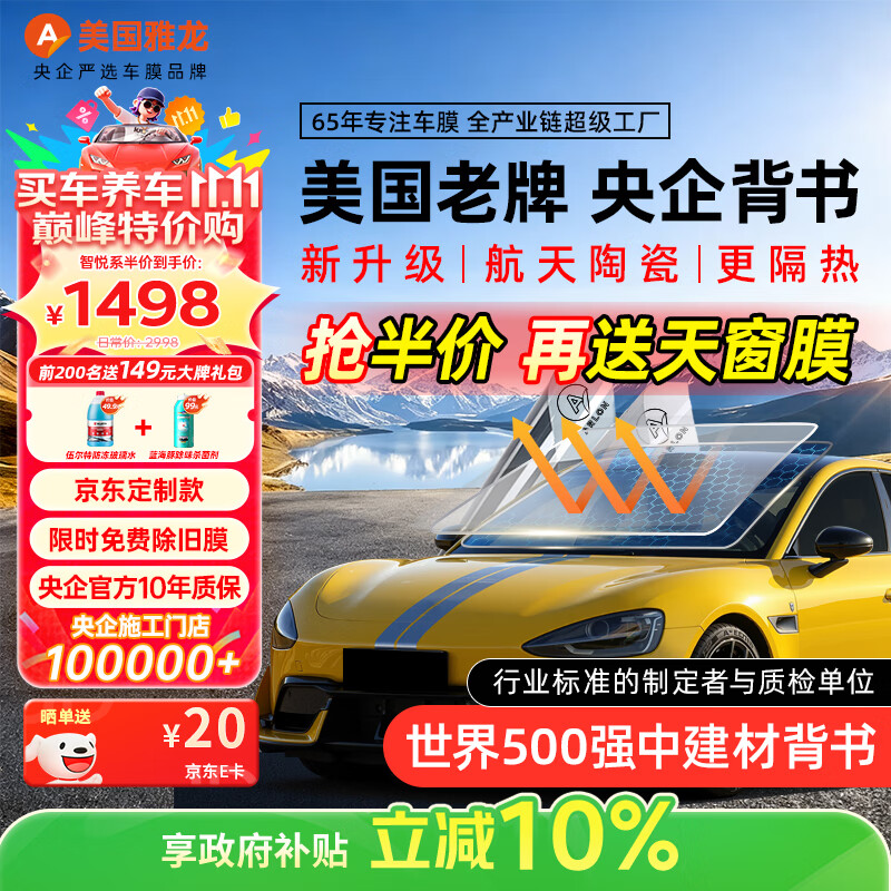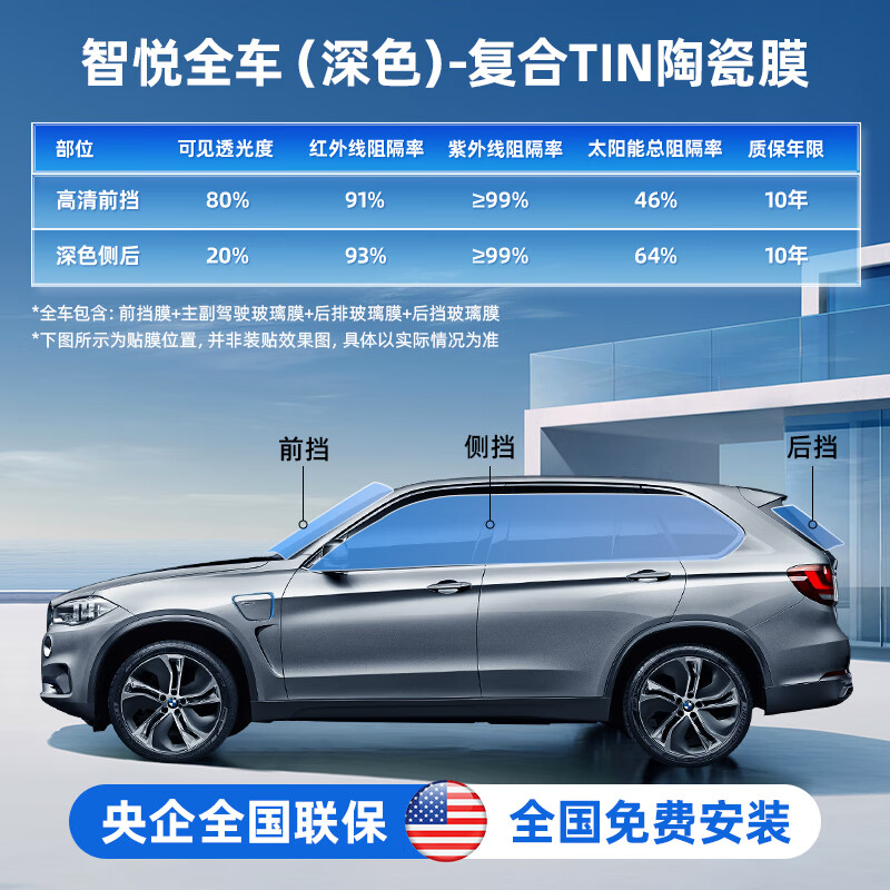 ARLON【顶配款】美国雅龙汽车贴膜智悦深色汽车玻璃膜隔热膜全车膜贴膜防紫外线防晒防爆膜包施工