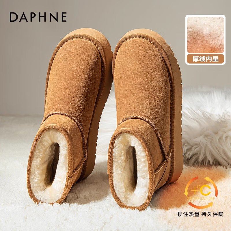 达芙妮厚底雪地靴女2025新款加绒冬季东北面包棉鞋保暖短靴懒人毛毛鞋