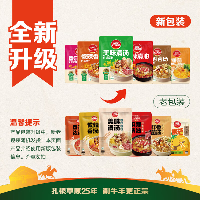 草原红太阳火锅底料 麻辣清油火锅底料135g 1~2人份 麻辣烫底料新老包装随机
