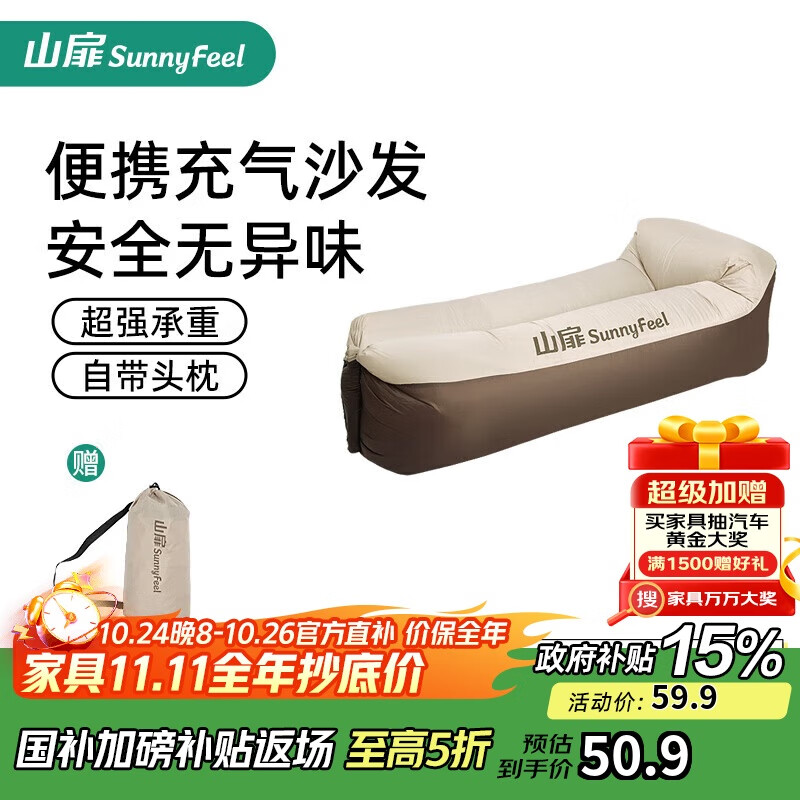 山扉充气沙发户外露营懒人空气单人便携式野营音乐节气垫床坐躺 卡其