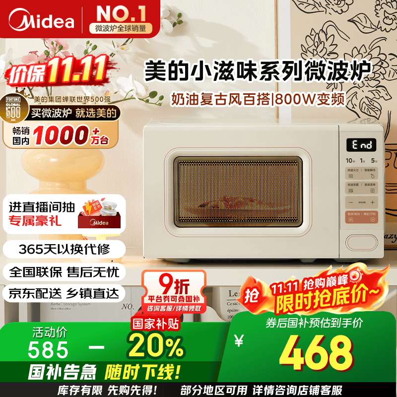 美的(Midea)小滋味系列微波炉变频家用奶油风百搭复古转盘式一级能效微波炉以旧换新20L(M2H2)