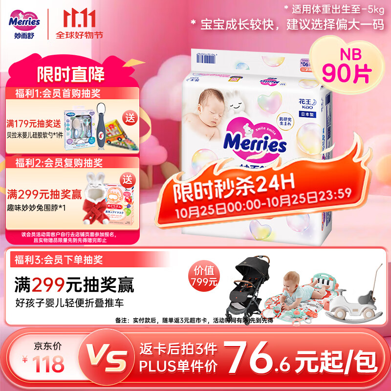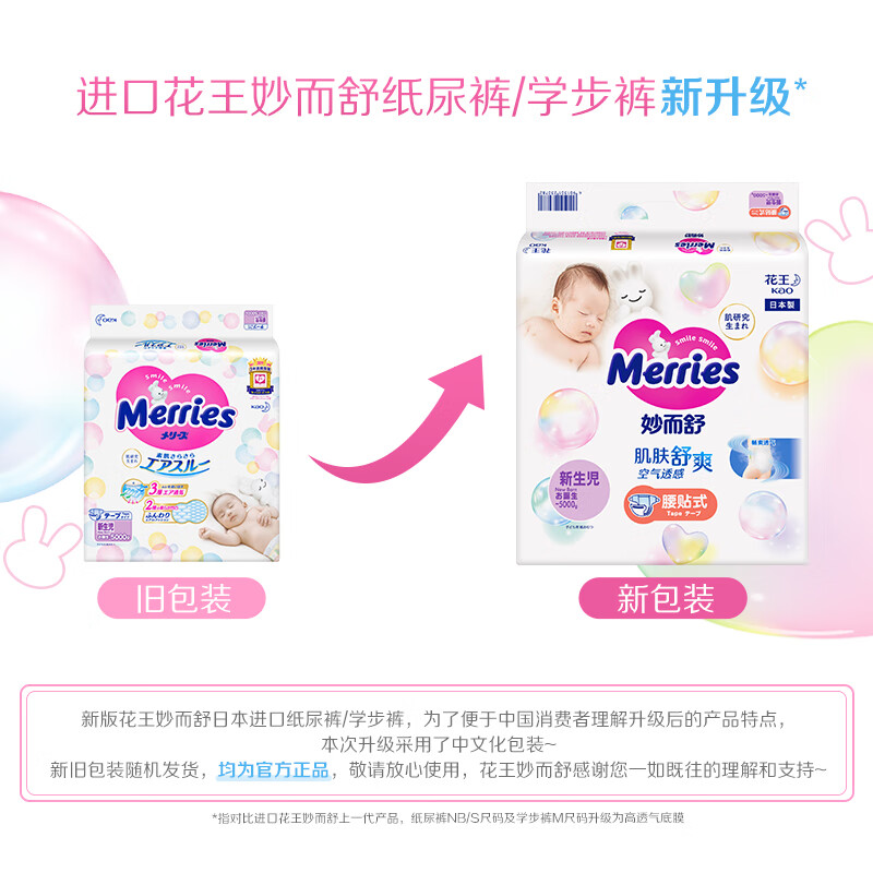 花王妙而舒纸尿裤NB90片(出生-5kg)新生儿小号婴儿尿不湿宝宝屁屁畅快