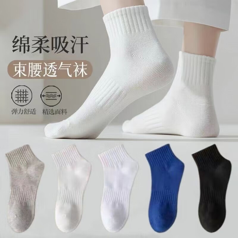 【休闲运动】男款袜子中筒袜透气吸汗防臭袜运动潮流百搭长袜男 10双装(均码 10白)