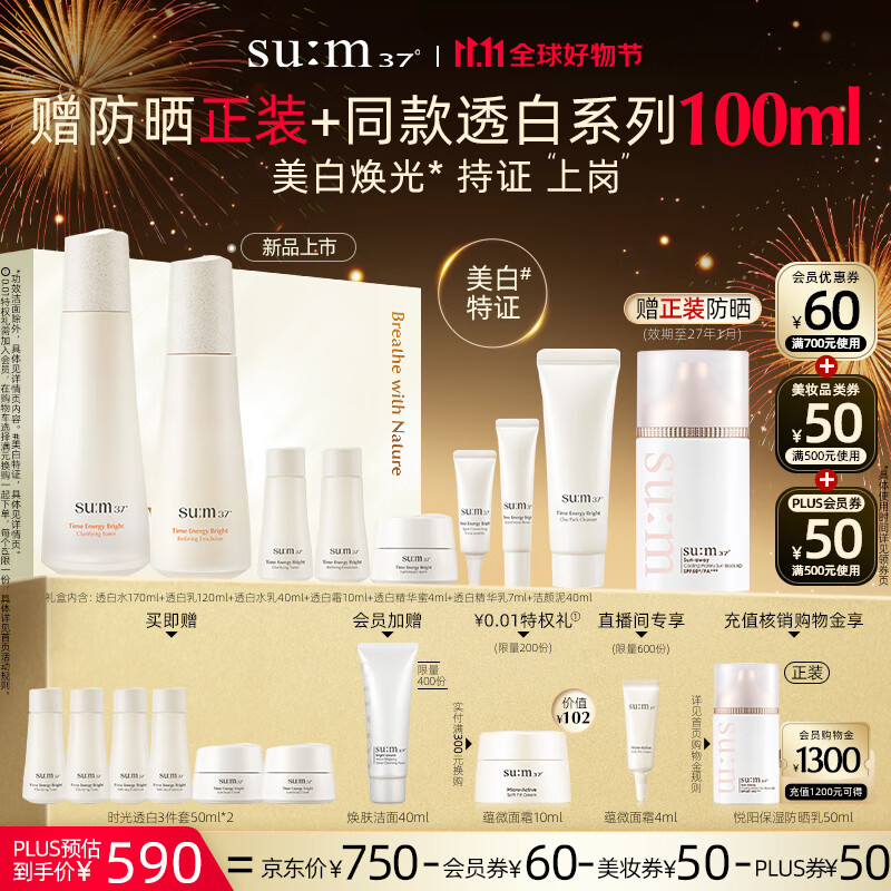 苏秘37°(Su:m37°)【新品】时光肌底透白8件套391ml美白水乳护肤套装生日礼物送女友