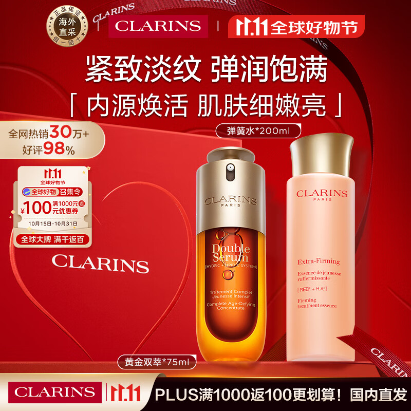 娇韵诗Clarins弹簧水200ml+双萃精华75ml轻熟肌进口女生生日双11礼物